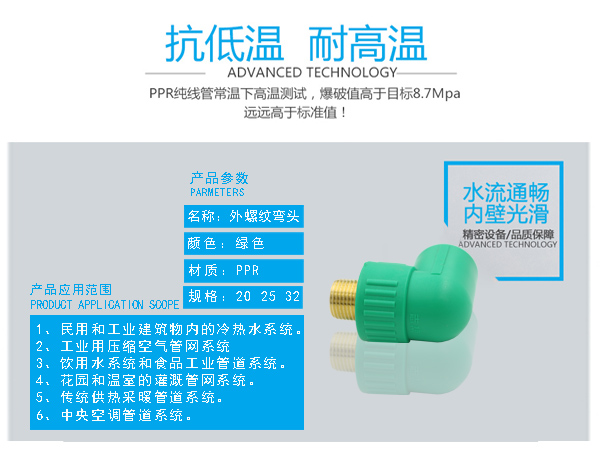 □ 管件連接牢固:由于聚丙烯具有良好的熱熔接性能,熱熔連接將同種材料制造的管材和管件連接成為一個整體,杜絕了漏水的隱患。